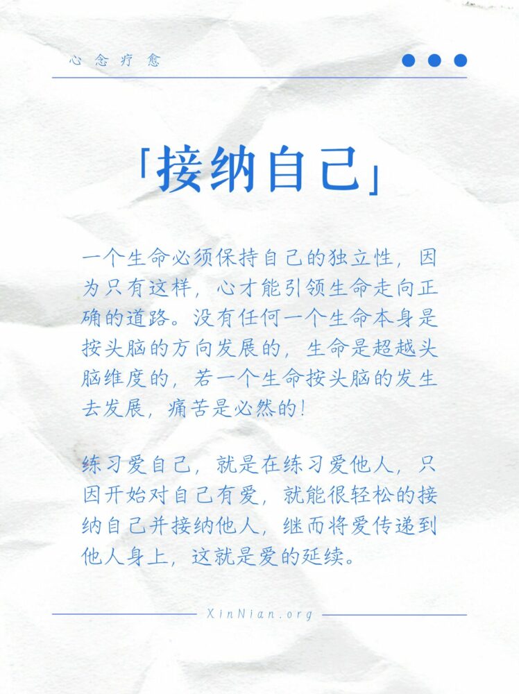 只是一个转念,只因开始对自己有爱,就能很轻松的接纳自己并接纳他人,继而将爱传递到他人身上,这就是爱的延续。